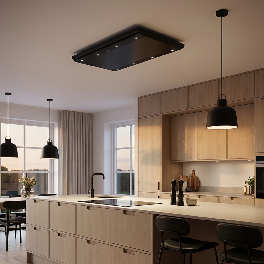 De mjukt radiebockade hörnen och de rundade kanterna ger Havrik sitt harmoniska intryck. All fläktfunktion har fällts in i undersidan vilket ger rena och lättskötta ytor. Fläkten är en perfekt lösning för både ny- och ombyggnation där man vill undvika omfattande ingrepp i taket. Havrik kräver endast ett mindre hål för luftkanalen, vilket gör installationen både enkel och snabb.