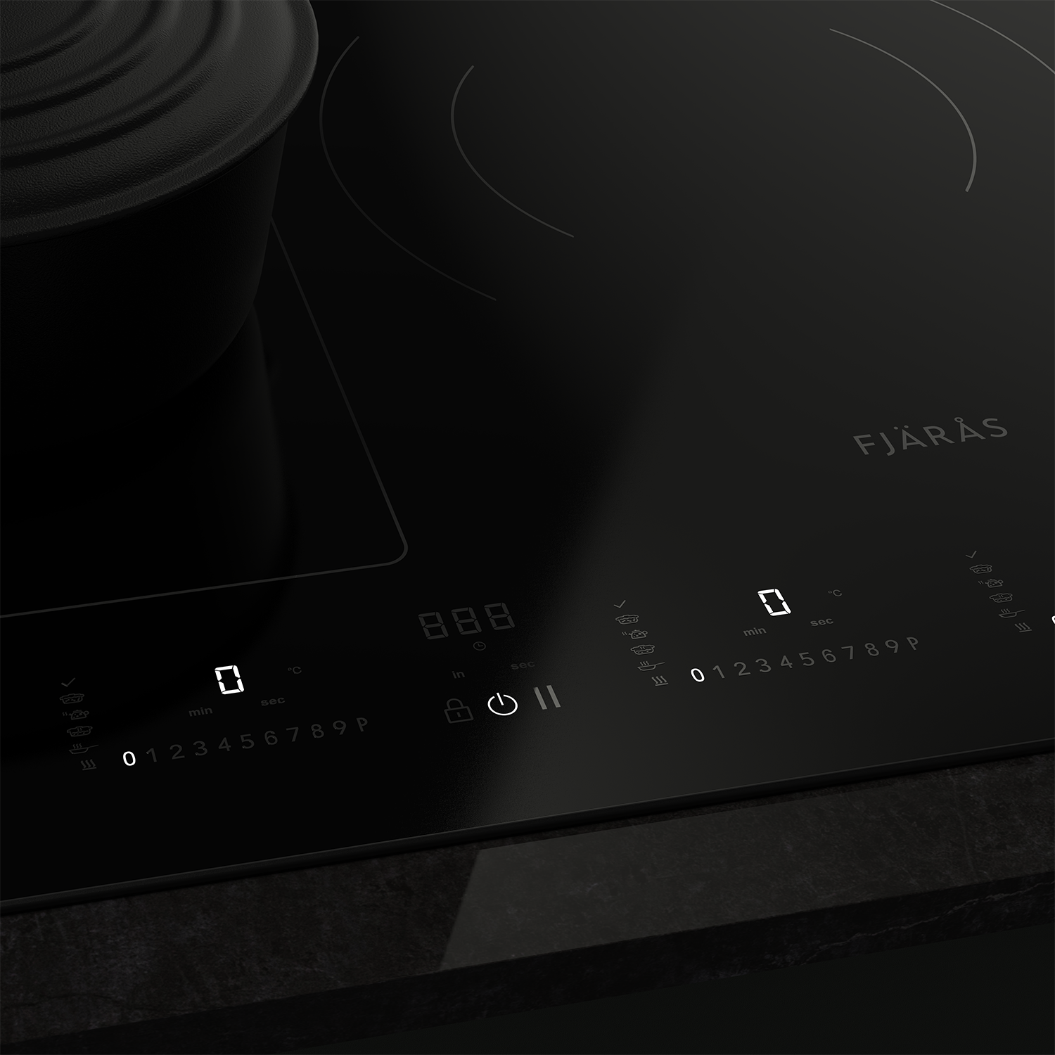 Granit induktionshäll med blankt glas. Senaste induktionstekniken Gx, kompletterad med Hoblink för att styra din fläkt från Fjärås.